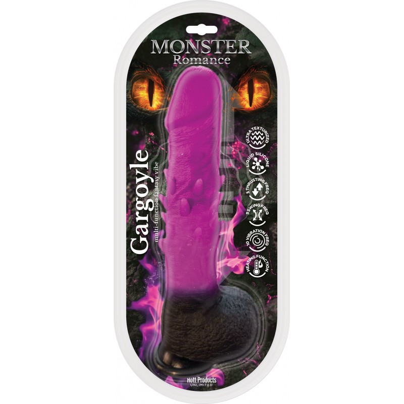 Unleash the beast with Gargoyle.This vibrating, rotating, heating and thrusting monster dildo delivers mythical power and textured bumps for wild stimulation. Rechargeable, and body-safe, conquer ecstasy tonight!